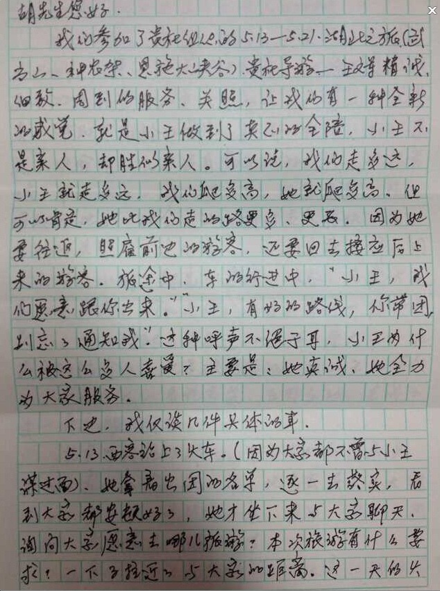 2015年5月13日 湖北精粹游客:崔桂玲、聶鳳歧的來信