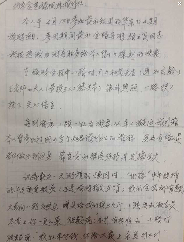2015年4月18日 華東全線游客:顧建平的來(lái)信